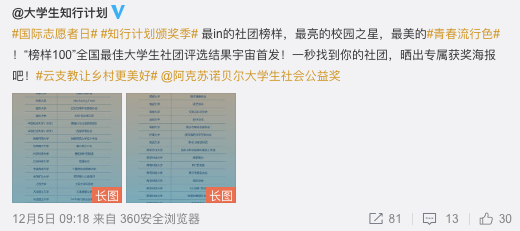 我们是@大学生知行计划“榜样100”全国最佳大学生社团,我们在#国际志愿者日# 展现青年力量、共绘#青春流行色#,用青春光芒点亮世界色彩,#云支教让乡村更美好# !