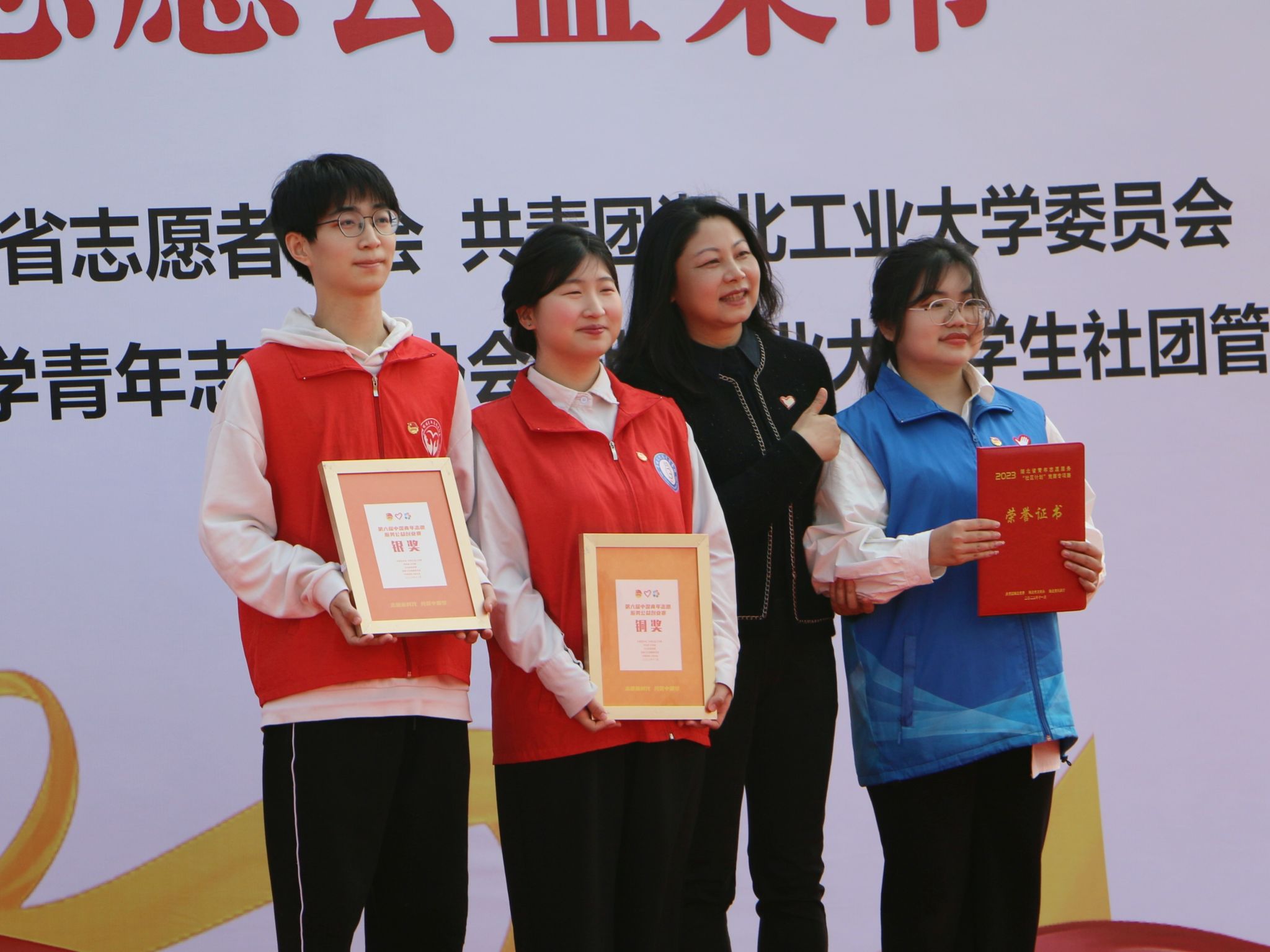 颁奖议程中,校党委副书记胡晓艳为学校2023年度“十佳雷锋志愿者”以及“志愿服务优秀组织”颁奖;湖北省志愿者协会副秘书长沈莉为获得全国志愿服务公益创业赛和湖北省“社区计划”竞赛的获奖项目团队颁奖;湖北省青年志愿者行动促进中心主任贺茂林为“本禹志愿服务队”标识设计团队颁发感谢状并为第十四届中国青年志愿者优秀个人雷铭宇颁发荣誉证书。