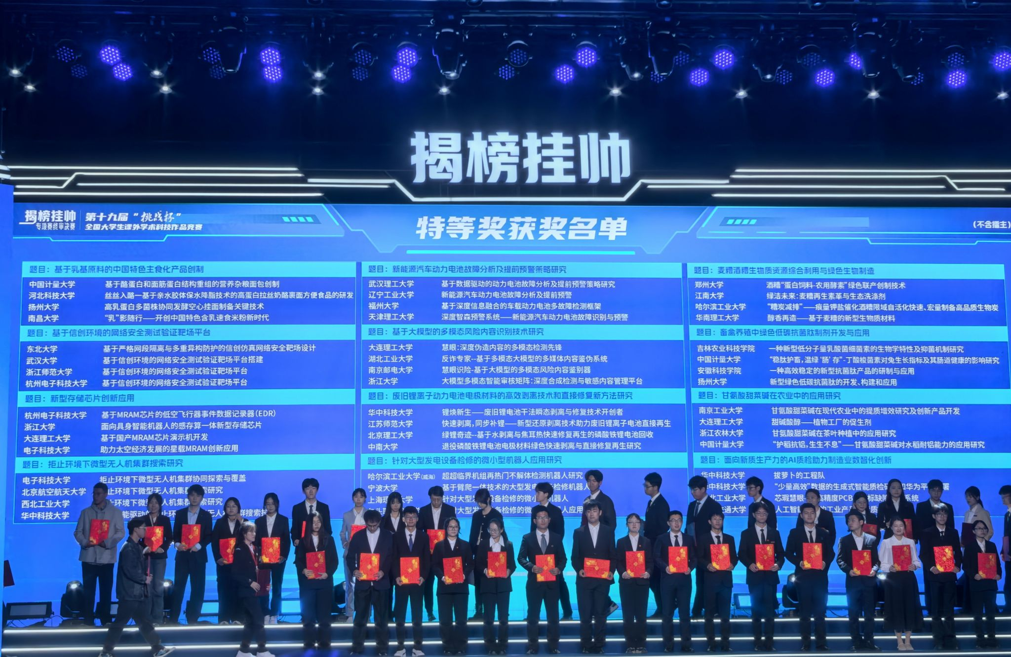 近日,由共青团中央、中国科协、教育部等主办的第十九届“挑战杯”全国大学生课外学术科技作品竞赛2024年度“揭榜挂帅”专项赛在北京、杭州顺利举行。我校学子在比赛中勇创佳绩,荣获特等奖2项、一等奖7项、二等奖3项、三等奖6项,总积分位居省属第一,全省第三位。