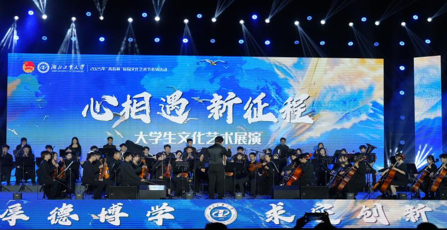 展演以大气磅礴的管弦乐合奏《钢铁洪流进行曲》《无人智胜进行曲》拉开序幕,铿锵有力的旋律激荡起全场师生的爱国共鸣,生动展现了湖工大人积极融入新时代科技强国战略的信心豪情。