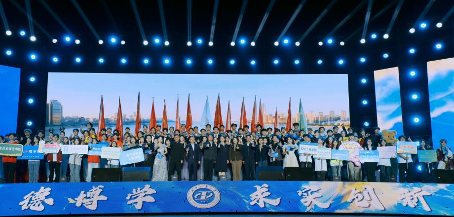 “南湖水,长江波,日夜流淌我心中的歌…”,晚会最后,全体在场师生饱含赤诚与眷恋齐唱校歌,共同祝愿母校在工业强国的征程上绽放华光。