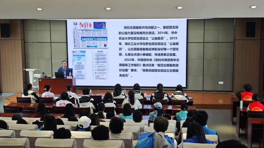 湖工大青年传媒讯 4月18日,为进一步优化学校志愿服务体系,全面提升湖工大志愿者的服务能力,我校成功举办了湖北工业大学青年志愿服务人才培养“青雁计划” 2026年度公益委员培训,学校各级志愿服务组织主要负责人、全体2025级团支部公益委员和第八届西部计划研究生支教团参与了本次培训。