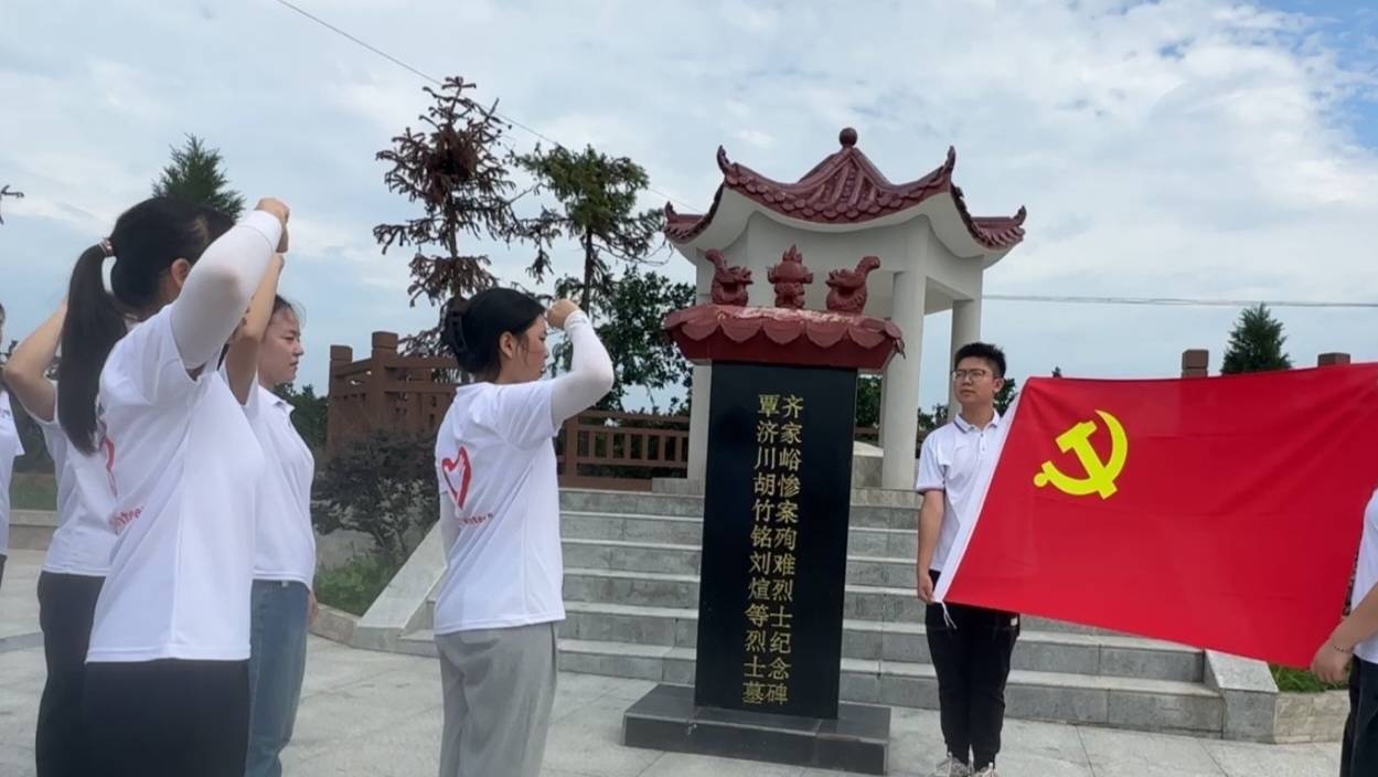 实践队员们在烈士陵园,再次对着党旗宣誓,重温入党誓词,决心以实际行动来继承先烈们的遗志。