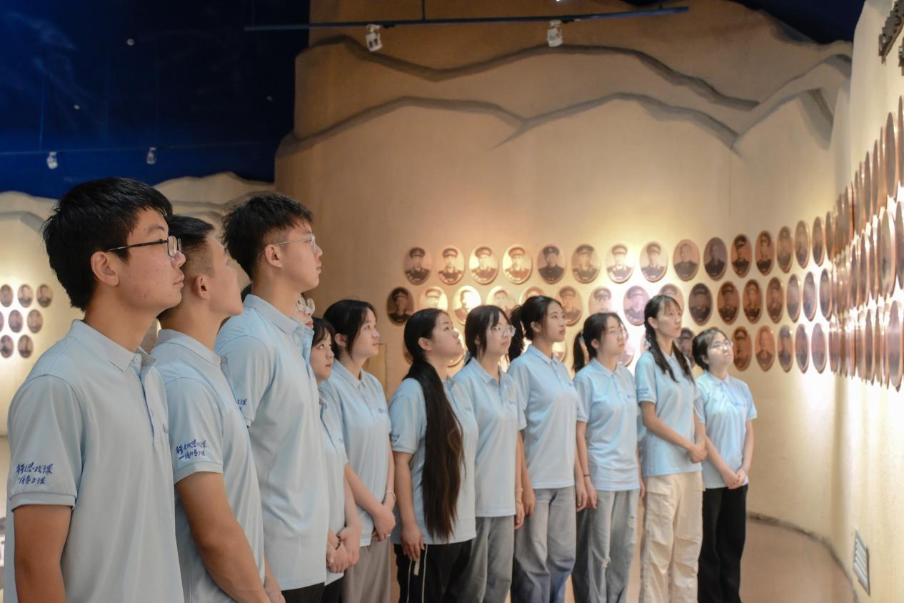 山峦叠嶂映忠魂,碑前肃立思先烈。7月14日,实践队奔赴“黄麻起义和鄂豫皖苏区纪念园”进行调研实践。在巍峨耸立的黄麻起义和鄂豫皖苏区革命烈士纪念碑前,志愿者们肃立致敬。碑身正面镌刻的“黄麻起义和鄂豫皖苏区革命烈士纪念碑”十七个大字,字字千钧,铭记着革命先烈的丰功伟绩。绕过纪念碑,穿过英烈广场,志愿者们来到黄麻起义和鄂豫皖苏区革命历史纪念馆。纪念馆内,每一件展品都承载着一段感人的故事,激荡着志愿者们的胸怀,从《黄麻惊雷》展区的声光电重现,到将军纪念墙的沉思,志愿者们深刻感受了革命先烈为民族独立和人民解放的英勇奋斗。