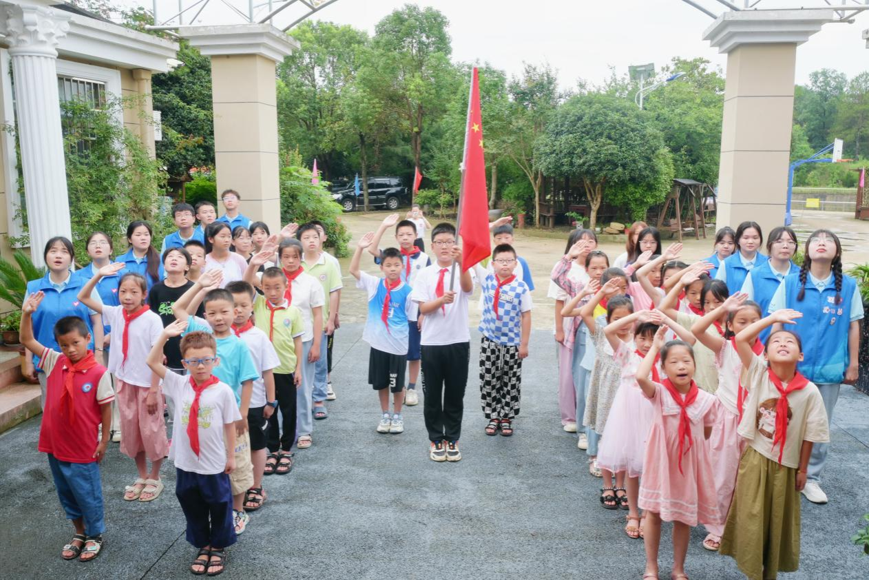 青春誓言响云霄,童心向党旗帜飘。7月15日,为了让高桥镇高楼村的孩子们进一步了解红色文化,感悟革命精神,志愿者们发起组建了一只属于他们的国旗护卫队,并举行升旗仪式。“一二一、一二一…….”嘹亮的口号、坚定的步伐、国旗护卫队的孩子们身姿挺拔;国歌奏响,孩子们面向鲜红的国旗,行少先队礼,高唱国歌,那铿锵有力的声音,是对先辈最好的告慰,也是对未来最坚定的承诺。他们立志将红色精神内化于心、外化于行,以实际行动践行青春使命,不负韶华,不负时代。
