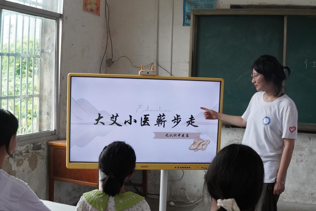 为助力传承和发扬当地中医药文化,丰富青少年暑期生活,深化其队家乡文化的认同感、归属感,湖北工业大学“青佑之光”志愿服务团赴蕲春文化传承实践队联合蕲春县张塝镇瓢铺小学于7月9日—8月3日在瓢铺小学开展“蕲”心协力,让“艾”回家系列活动。